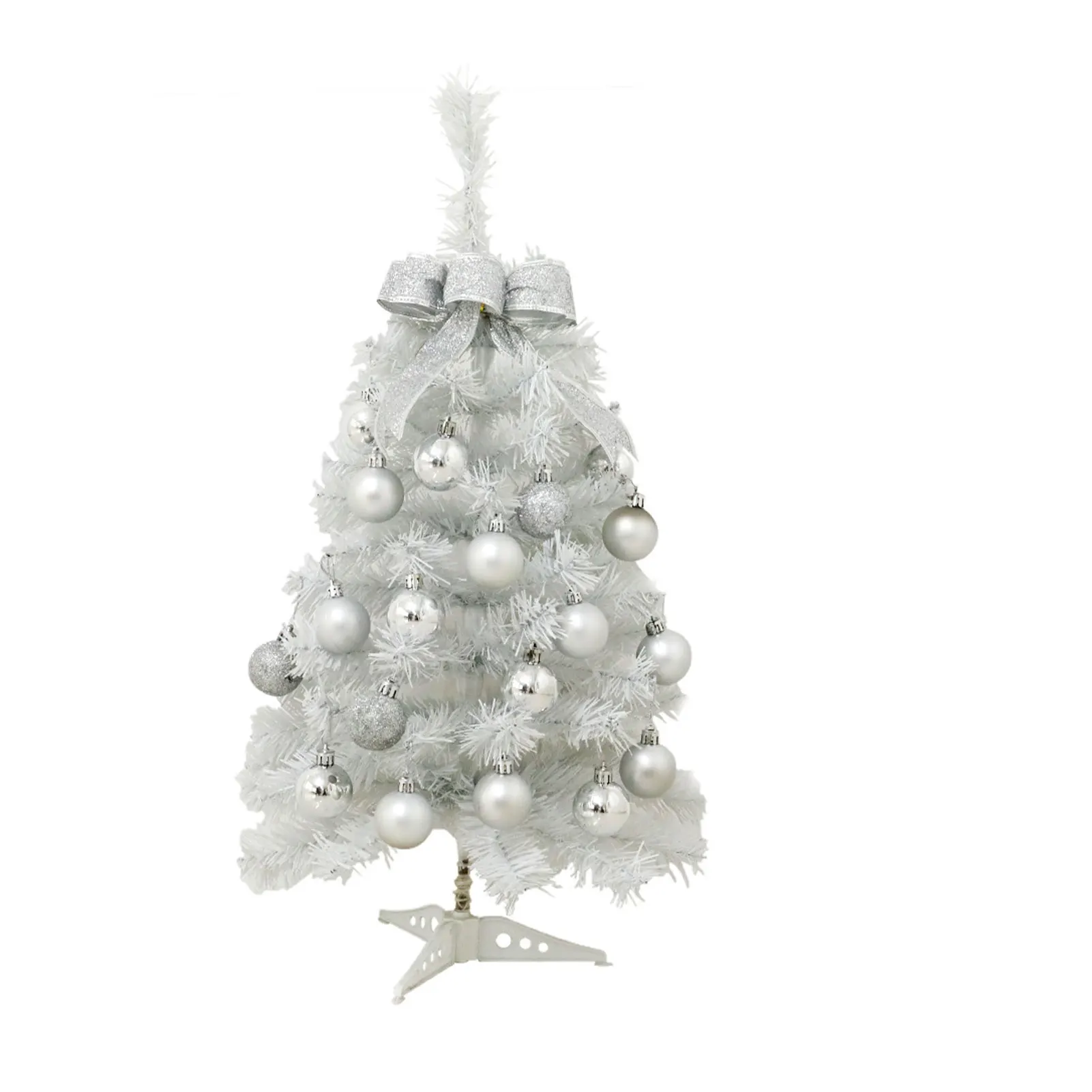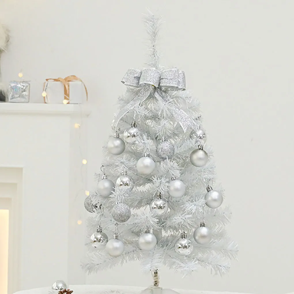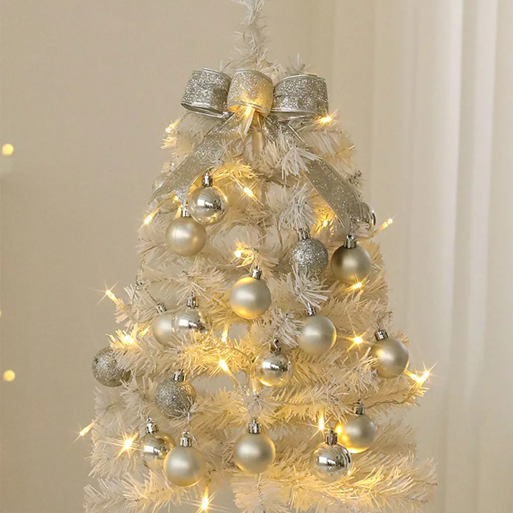 Mini Weihnachtsbaum mit LED-Beleuchtung – Weißer PVC-Baum mit Kugeldekoration